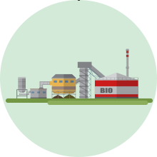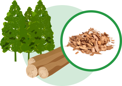木質バイオマス燃料は、様々なエネルギー変換手法を用いて、それぞれの発電所に合わせて燃料を供給しています。必要に応じて熱化学変換や化生物化学的変換により必要な燃料に変換しています。